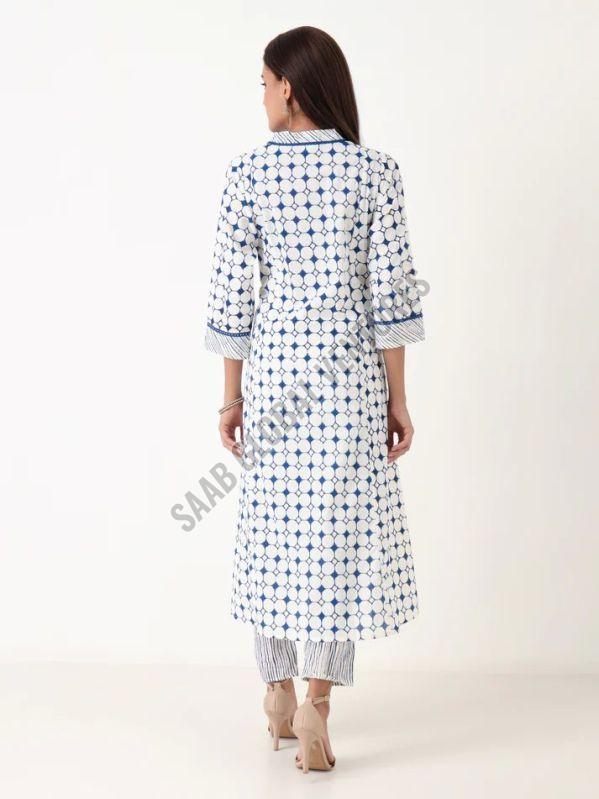 Step into serene sophistication with the Varnnan Blue Moon Anarkali Set — where soft geometry meets effortless summer elegance. Crafted in pure, breathable cotton, this ensemble features a predominantly white base adorned with a soothing blue geometric pattern of circles connected by squares, offering a perfect blend of structure and charm.