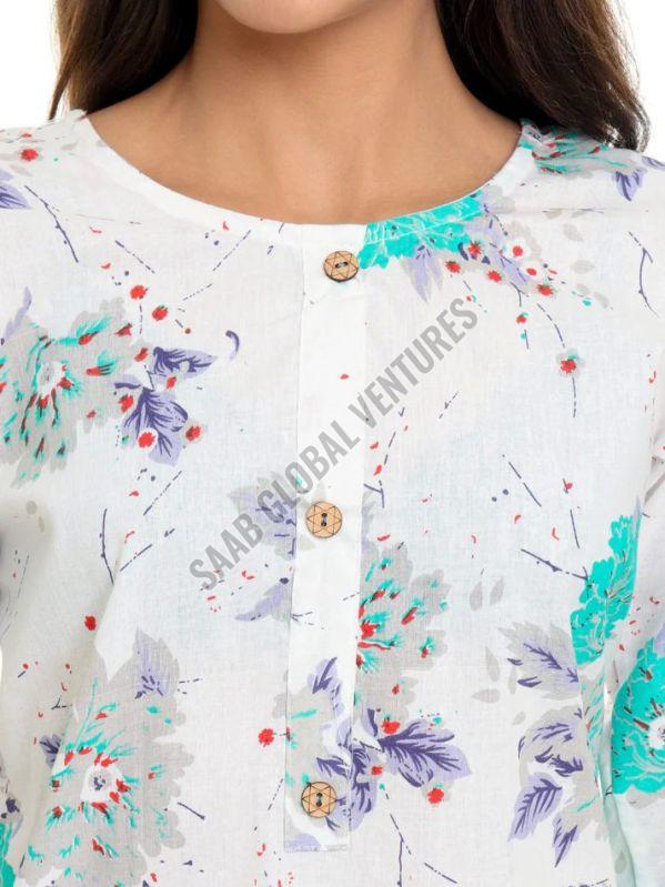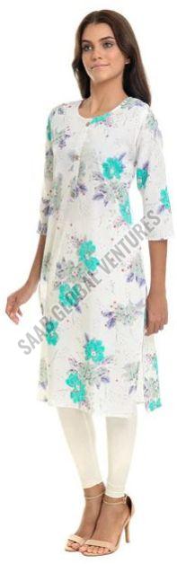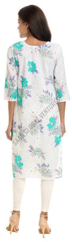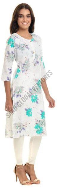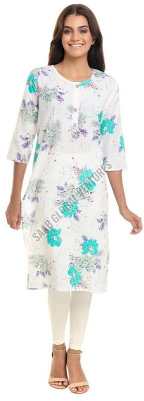 Designed with three-quarter sleeves and a classic round neck, this kurti is perfect for women who appreciate understated beauty and breathable comfort — whether for daily wear, office dressing, or relaxed weekend outings. Its light fabric and gentle hues make it a refreshing choice for warm-weather days.