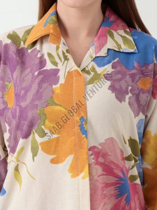 Crafted from breathable pure cotton, this eye-catching co-ord set features large, expressive floral prints on a crisp white base, bringing a fresh and lively vibe to your summer wardrobe. The above-the-knee A-line top is designed with a smart collared neck and three-quarter sleeves, offering a tailored yet relaxed look.