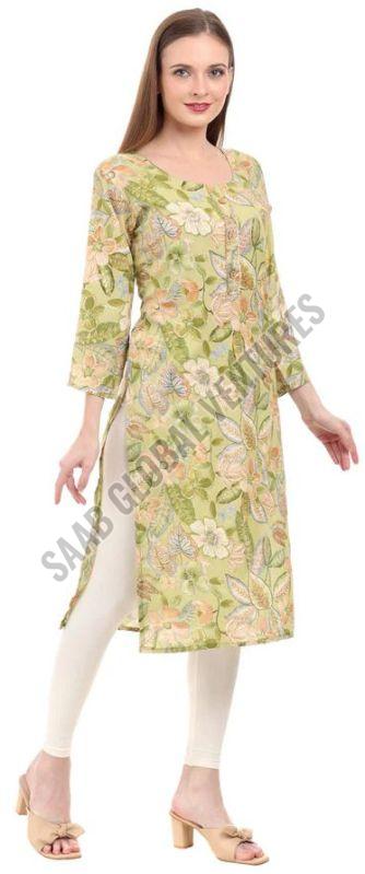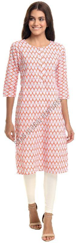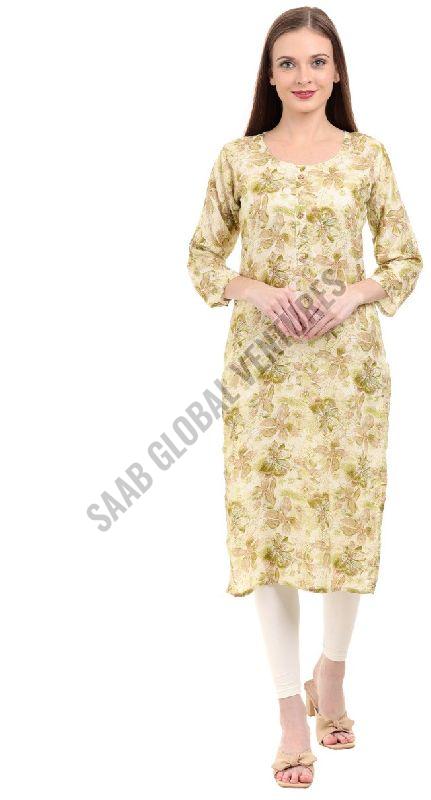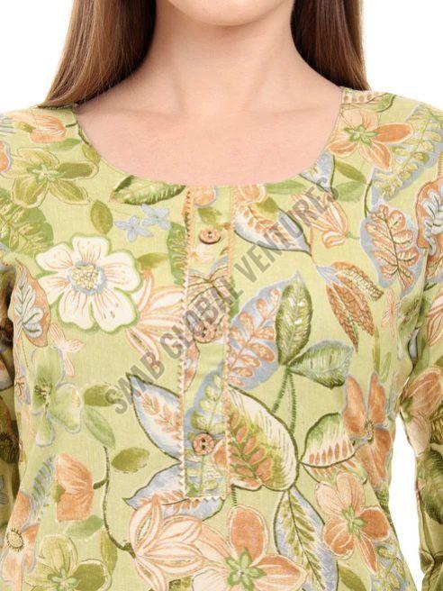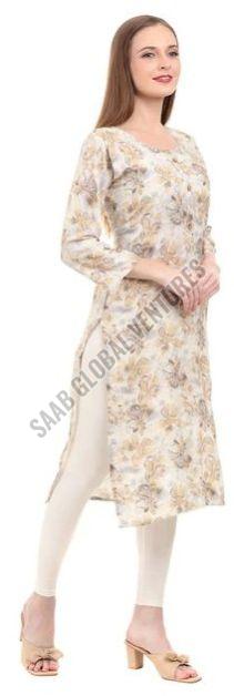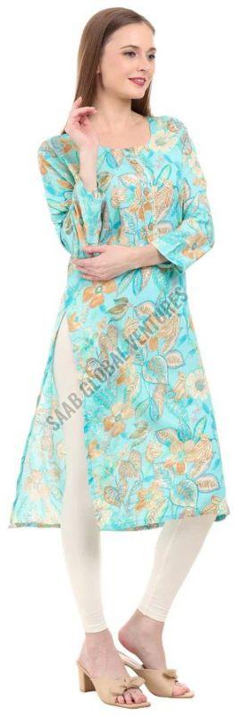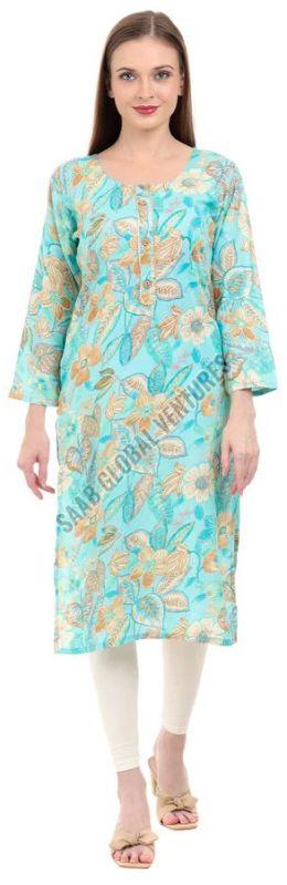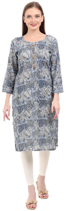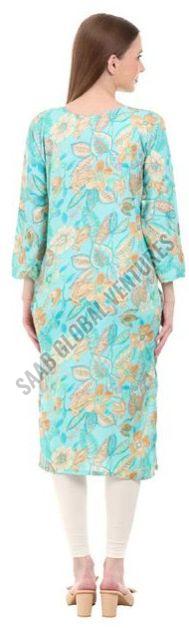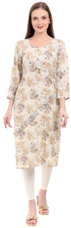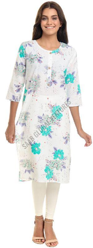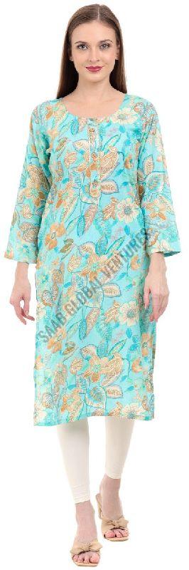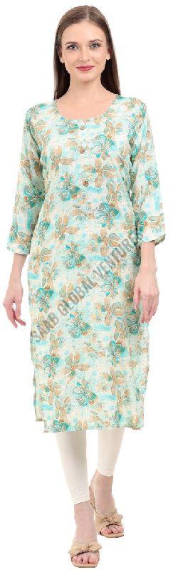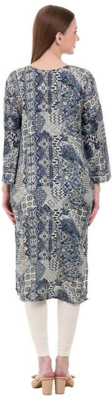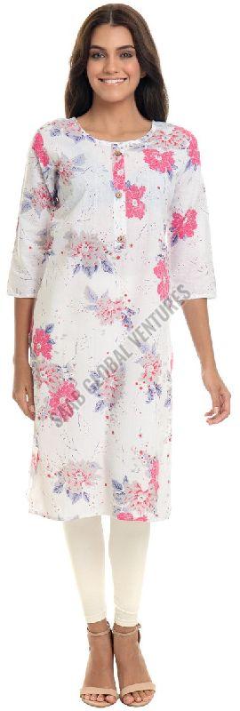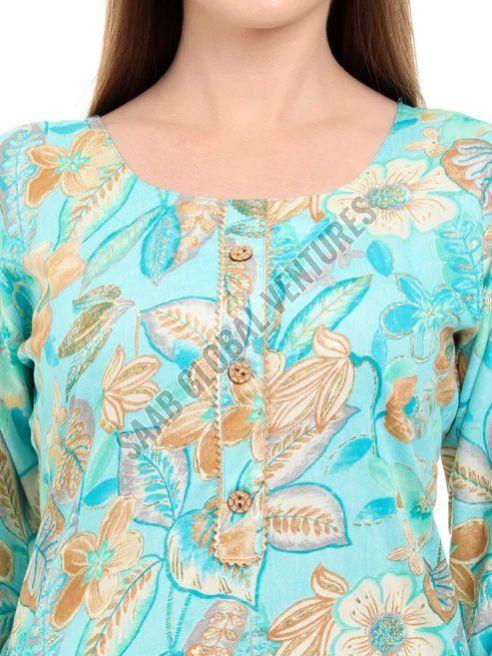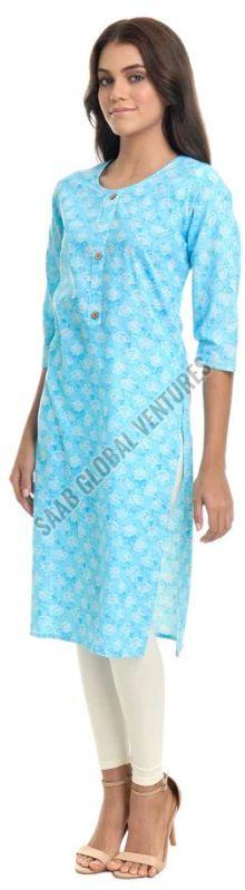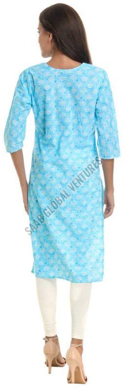 Designed with three-quarter sleeves and a classic round neck, this kurti is perfect for women who appreciate understated beauty and breathable comfort — whether for daily wear, office dressing, or relaxed weekend outings. Its light fabric and gentle hues make it a refreshing choice for warm-weather days.