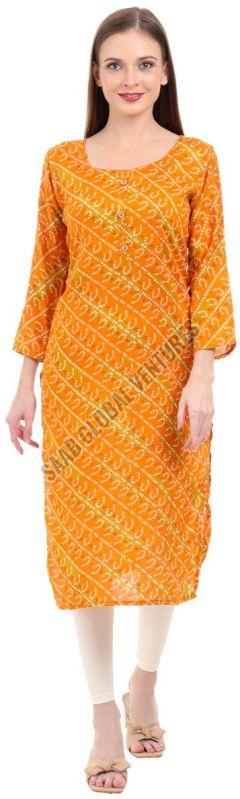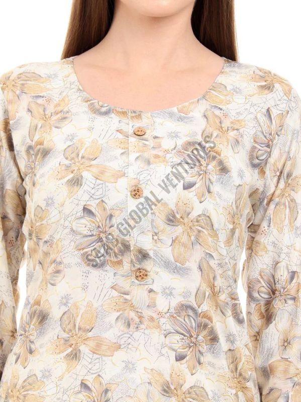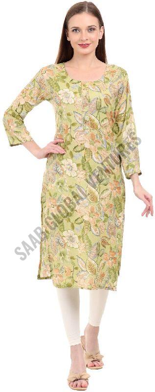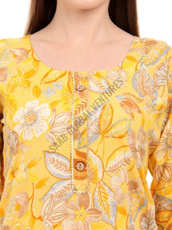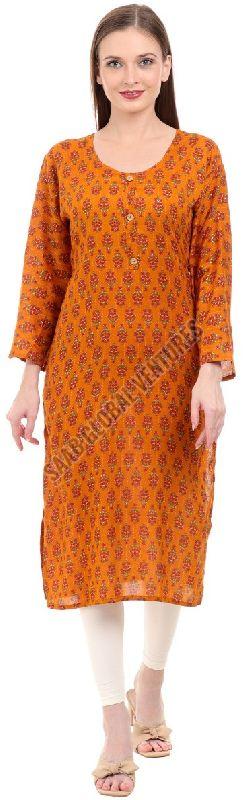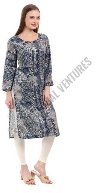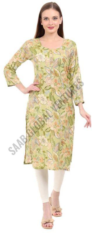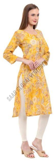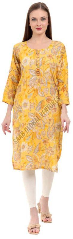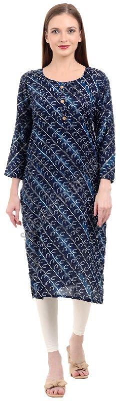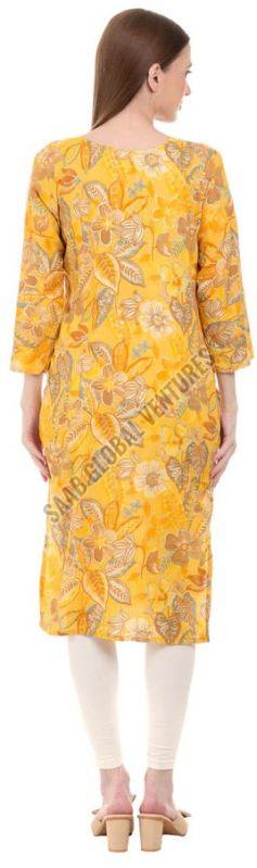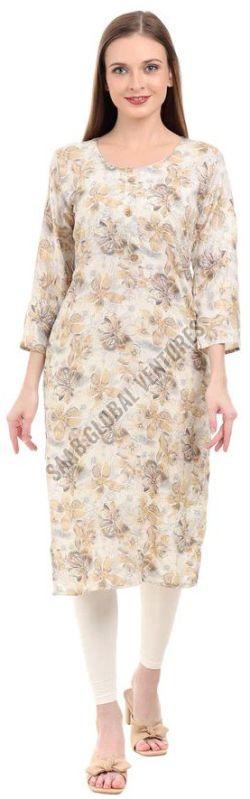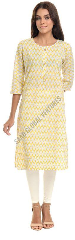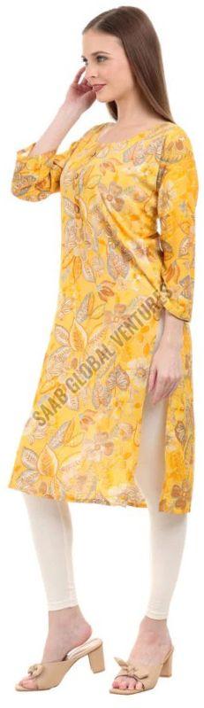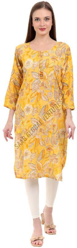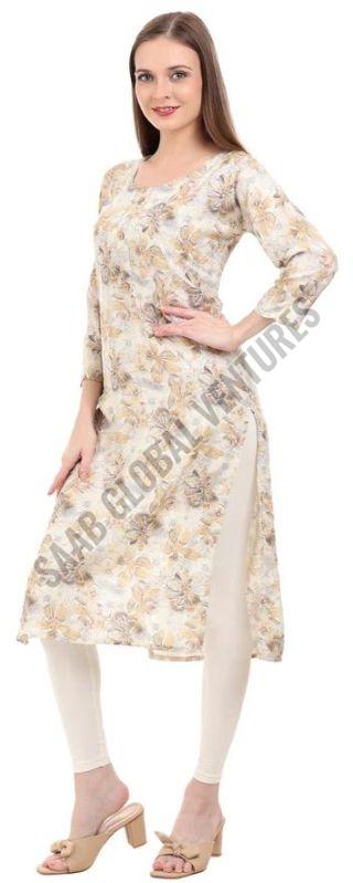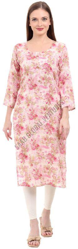 Designed with three-quarter sleeves and a classic round neck, this kurti is perfect for women who appreciate understated beauty and breathable comfort — whether for daily wear, office dressing, or relaxed weekend outings. Its light fabric and gentle hues make it a refreshing choice for warm-weather days.