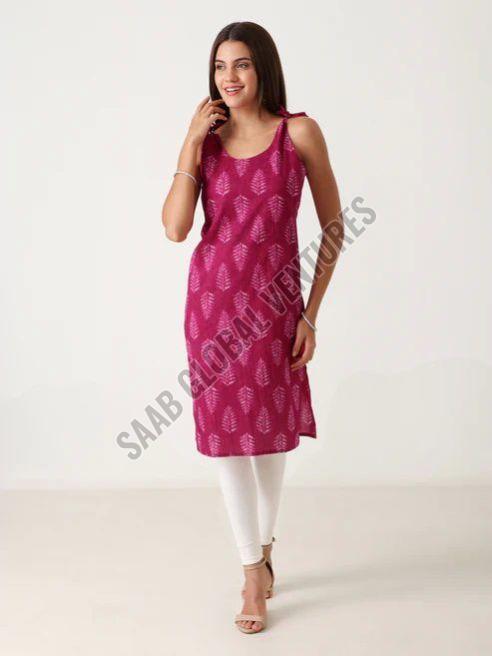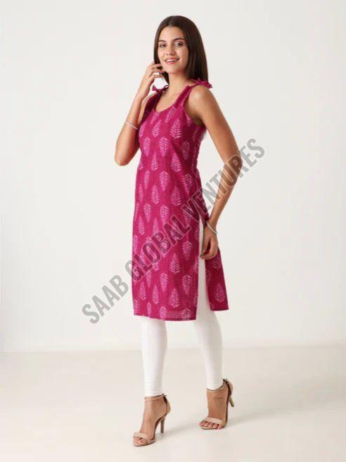 Made from 100% pure cotton, this knee-length straight fit kurti features a round neck and trendy dori tie-up shoulder straps, giving you a breathable and elegant look for all-day wear. The soft cotton fabric is ideal for summer wear, office wear, and daily casual outfits.