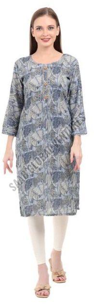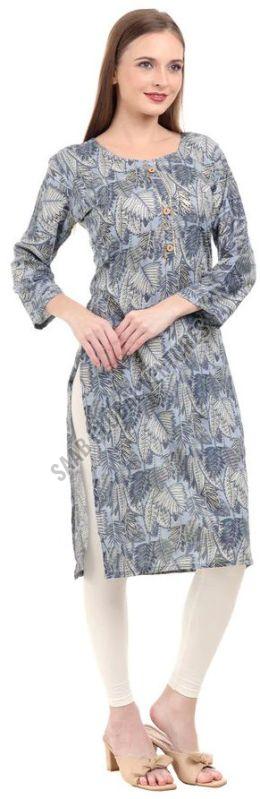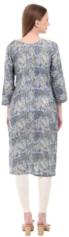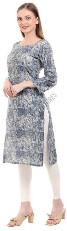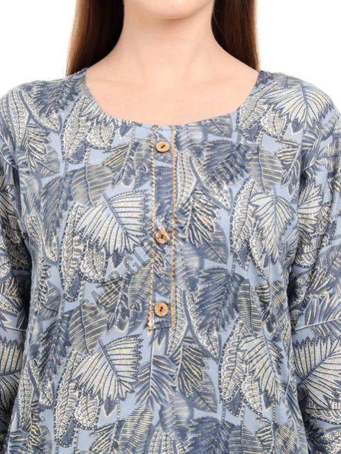 Embrace the serene beauty of nature with Varnnan's Peacock Leaf Elegance Kurti. Crafted in a rich peacock blue hue, this A-line kurti features delicate leaf prints that add a touch of tranquility and sophistication. The calf-length design and three-quarter sleeves offer a graceful silhouette, while the round neckline ensures timeless appeal.