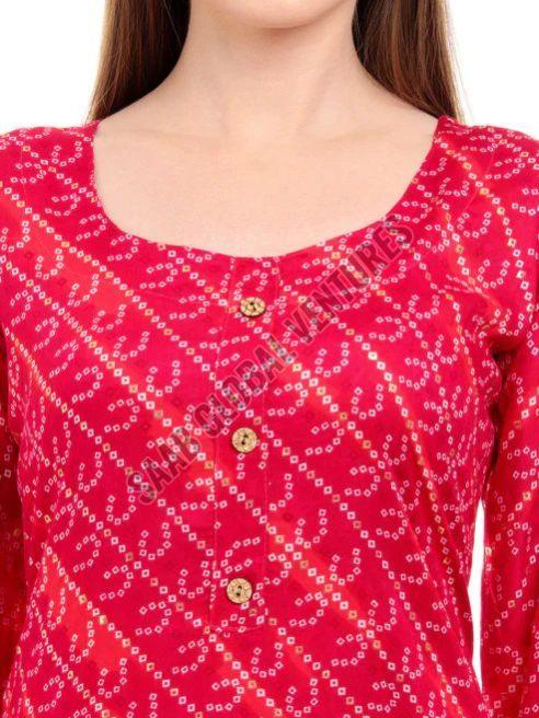 Embrace the timeless allure of traditional craftsmanship with Varnnan's Red Bandhani A-Line Kurti. This exquisite piece features intricate Bandhani prints on a rich red canvas, celebrating the heritage of Indian textile art.