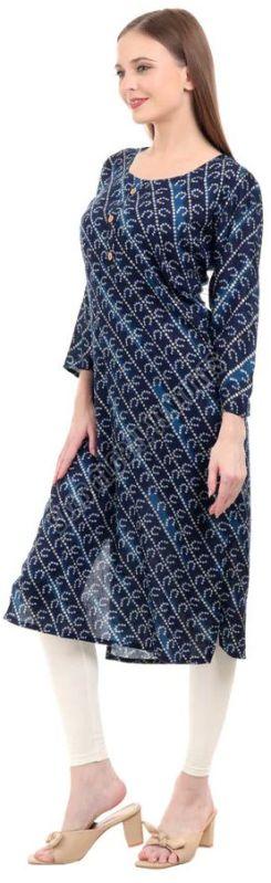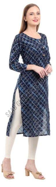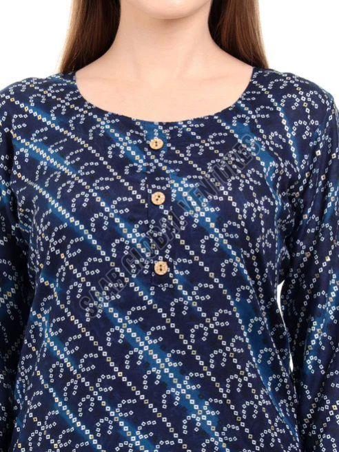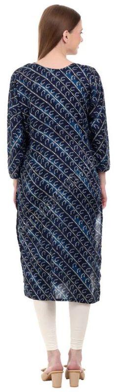Embrace the rich heritage of Indian textiles with Varnnan's Indigo Bandhani A-Line Kurti. Crafted from soft, breathable cotton, this calf-length kurti features intricate Bandhani prints in a serene blue hue, symbolizing tranquility and tradition. The A-line silhouette offers a flattering fit, while the round neckline and three-quarter sleeves provide classic elegance.