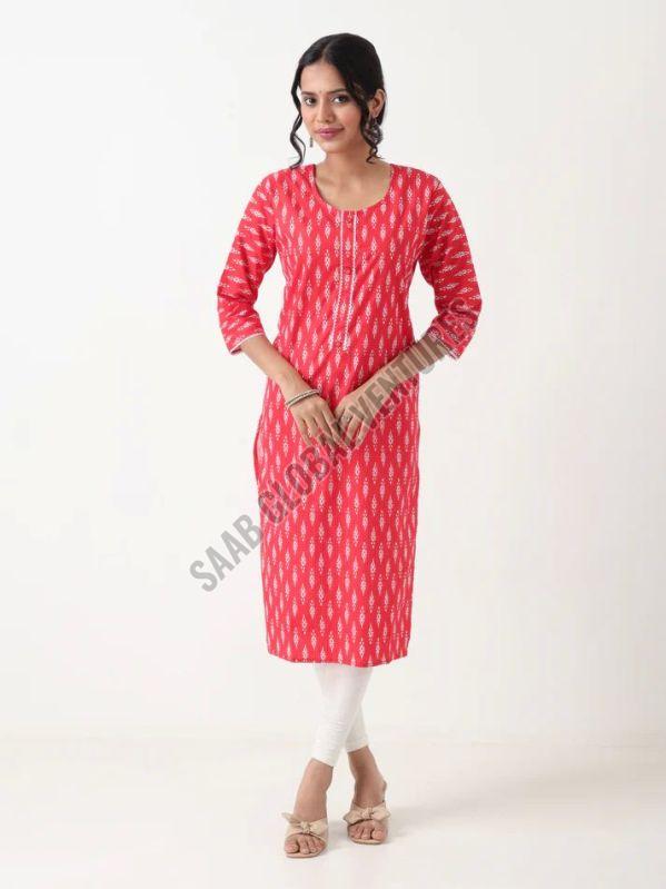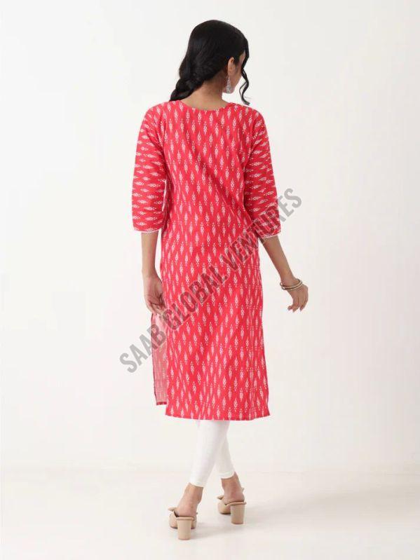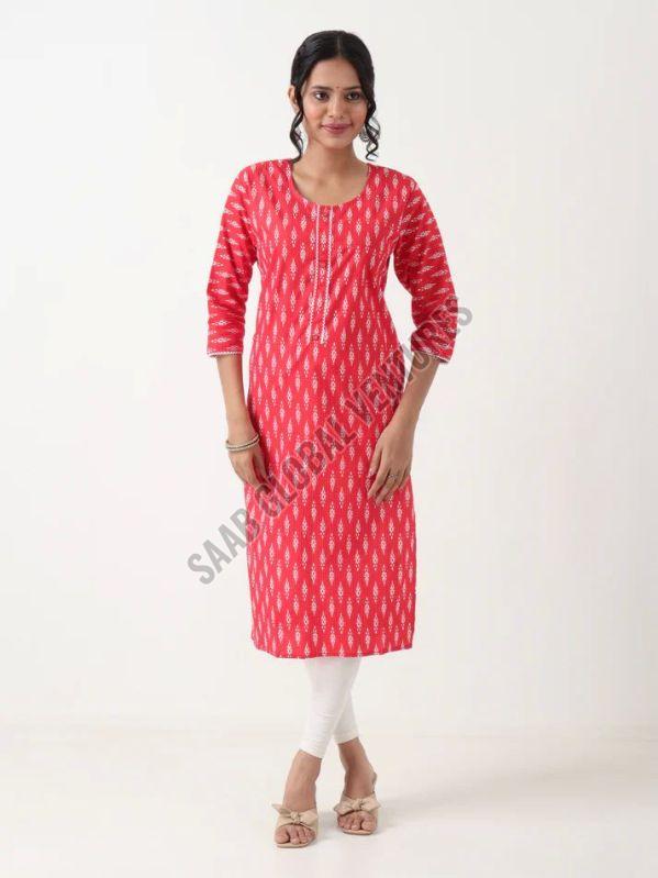 Brighten up your wardrobe with the vibrant charm of the Varnnan Scarlet Bloom Single Kurti — a beautiful balance of boldness and simplicity. This elegant red cotton kurti is accentuated with soft white design elements, creating a classic and eye-catching contrast. The round neckline, A-line calf-length cut, and three-quarter sleeves offer a flattering fit with everyday comfort.