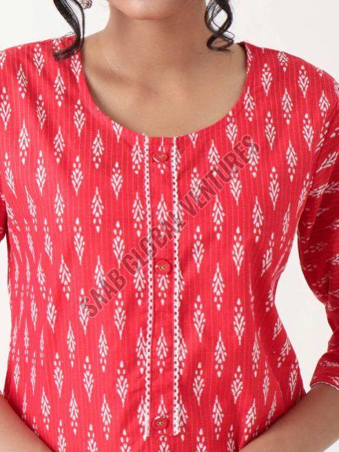 Tailored from breathable cotton, the Scarlet Bloom Kurti is ideal for warm days, casual gatherings, and daytime events, making it a versatile piece in your summer wardrobe.