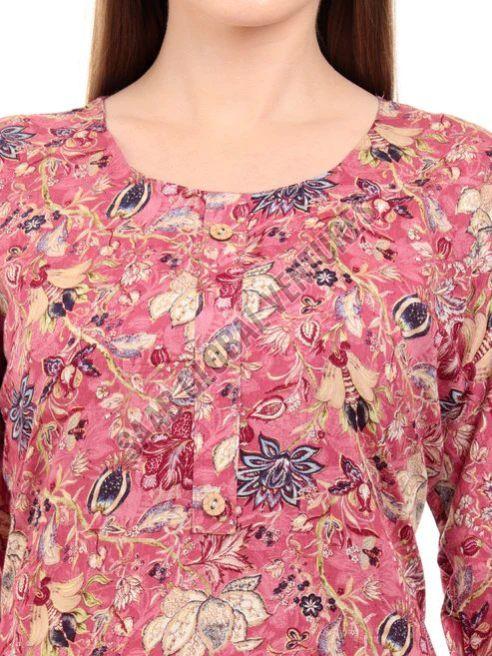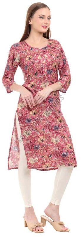 Elevate your ethnic wardrobe with Varnnan's Maroon Floral Print A-Line Kurti. Crafted in a rich maroon hue, this calf-length kurti features intricate floral patterns that exude timeless charm. The A-line silhouette offers a flattering fit, while the round neckline and three-quarter sleeves provide classic elegance.